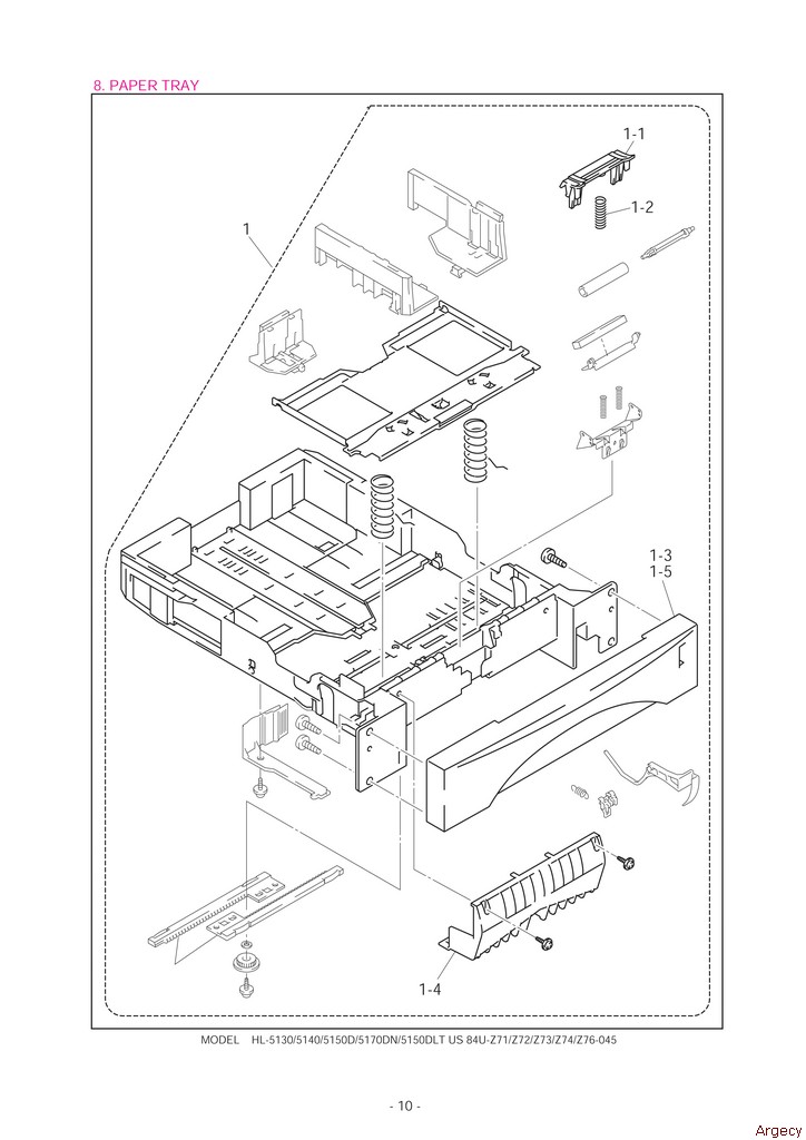 | 8. PAPER TRAY 1 LJ7607001 PAPER TRAY ASSY ZL 1 2 LJ5923001 SEPARATION PAD SPRING 3501- 3 LJ7315001 PAPER TRAY FRONT COVER 1- 4 LJ7616001 PAPER TRAY COVER1- 5 LJ7608001 PAPER TRAY FRONT COVER LT |
