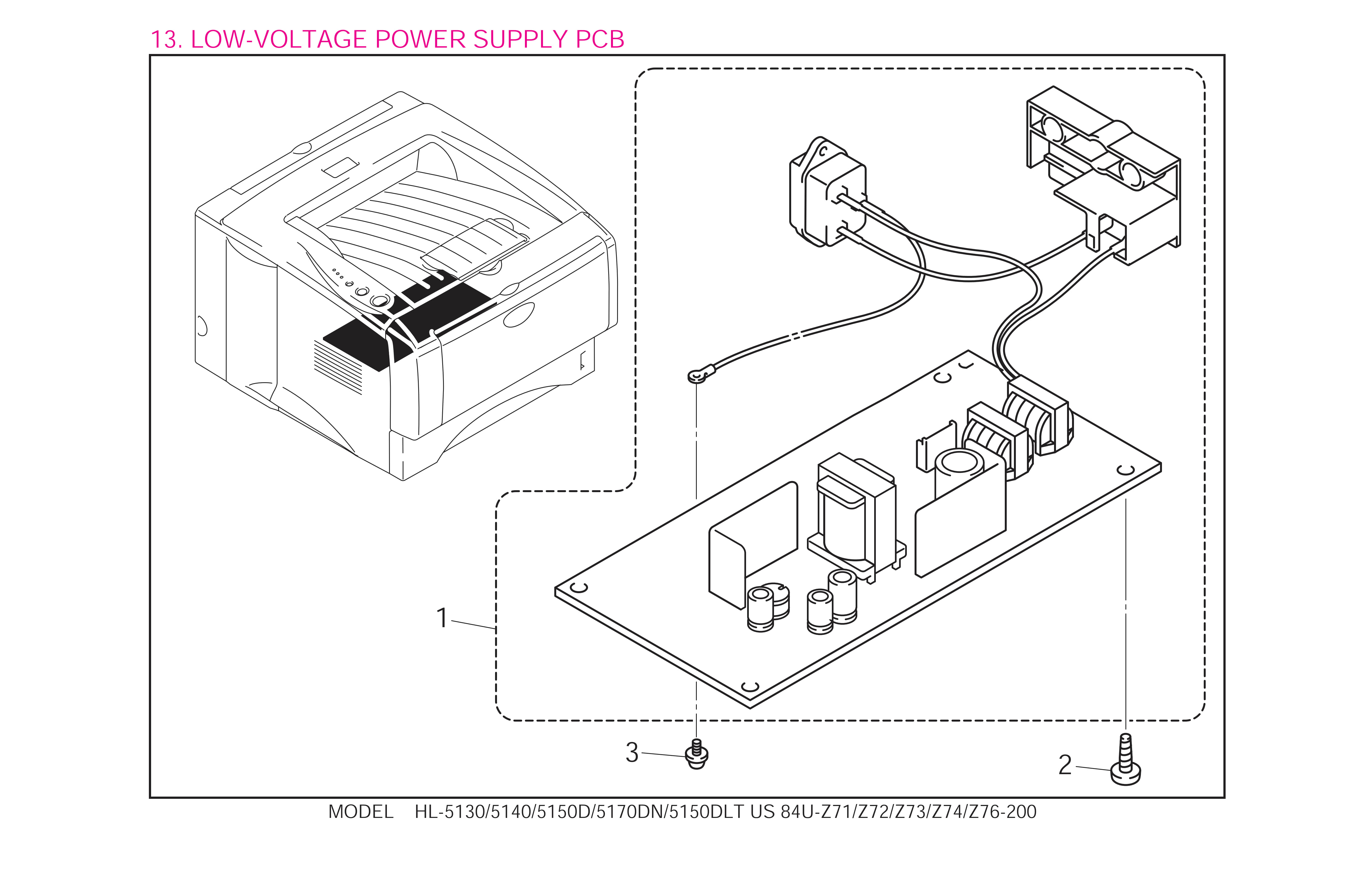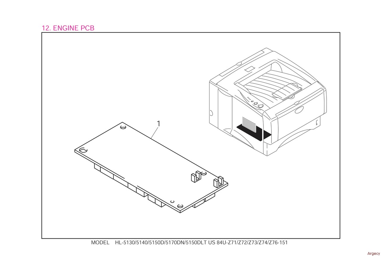 | 12. ENGINE PCB 1 LJ9188001 ZL2 ENGINE PCB ASSY (HL-5130) B512153 1 5150D / 70DN) 1 LG4404001 ZL2 ENGINE PCB ASSY 4 (HL-5140) |