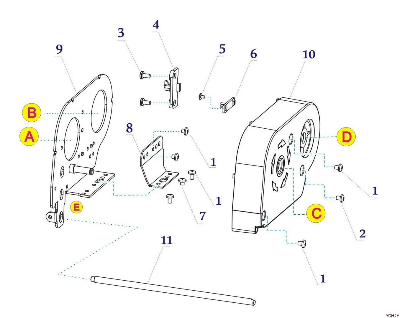 | 2.5 1 Screw M3*6 21.E.00130-060r 2 Support Plate, Right 21.501.491.0080r 3 Screw M3*4 21.E.00530-040f 4 Adapter Holder 21.503.491.0030r 5 Screw M3*6 21.E.11230-060r 6 Key 1 21.503.491.0040r 7 Ribbon Holder, Right 21.501.491.0040r | ![]() |