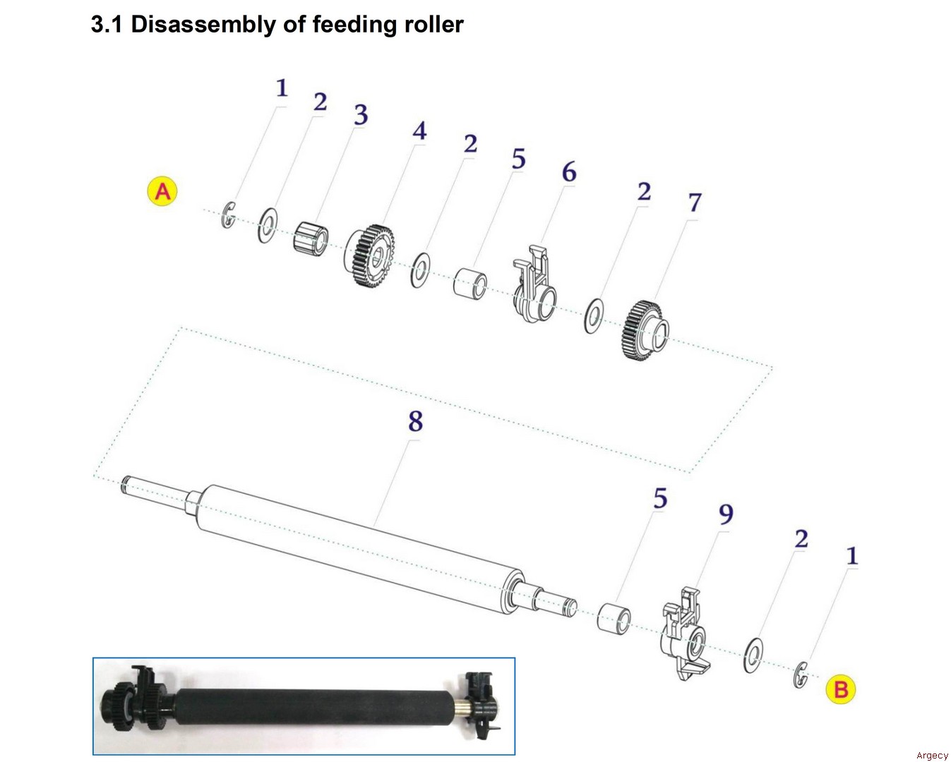 | 3.1 1 21.E.60340-000r E Ring 4.0 2 21.503.491.0490r Plastic Pad 6*0.5 3 21.523.904.0020r Unidirectional Bearing 4 21.503.491.0350r Unidirectional Gear 5 21.523.491.0011r Bearing 6 21.503.491.0190r Left Bearing Holder 7 21.503.491.0340r Gear 38 8 21.518.491.0011r Feeding Roller 9 21.503.491.0181r Right Bearing Holder | ![]() |