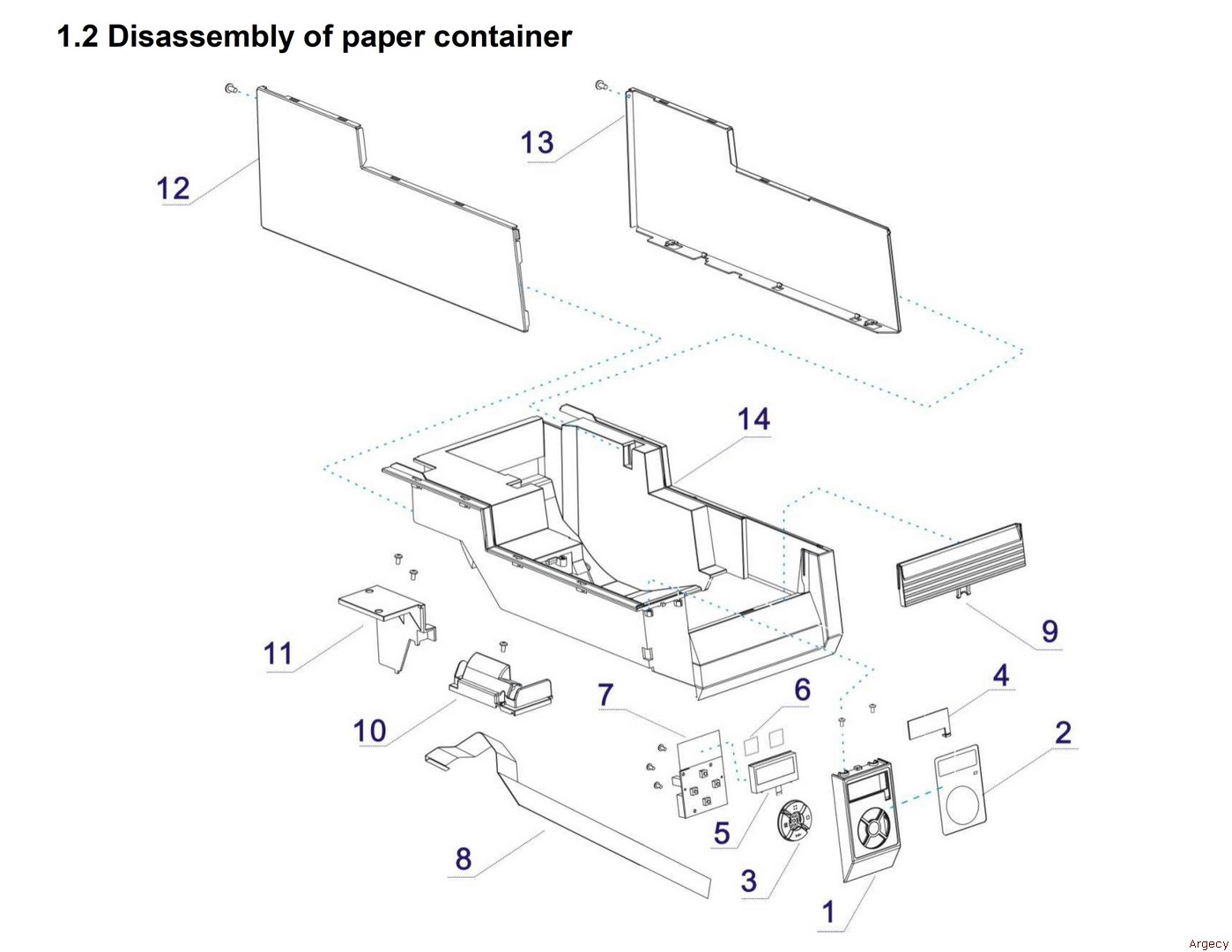 | 1.2 1 21.503.491.0520r Cover Control Plate 2 21.511.491.0030r Control Panel Label 3 21.503.491.0551r Key 2 4 21.503.491.0680r Control Panel Transparent Window 5 21.905.491.0010r Liquid Crystal Display/Lcd 6 21.518.491.0040r Lcd Pad 7 21.906.491.0030r Keypad Assy 8 21.001.491.0011r Ffc Cable, Keypad Assy 9 21.503.491.0540r Sheet Cover, Front 10 21.503.491.0700r Motor Cover 11 21.503.491.0670r Cover Converting Panel 1 12 21.501.491.0461r Side Board, Left 1 13 21.501.491.0471r Side Board, Right 1 14 21.503.491.0511r Paper Container 1 | ![]() |