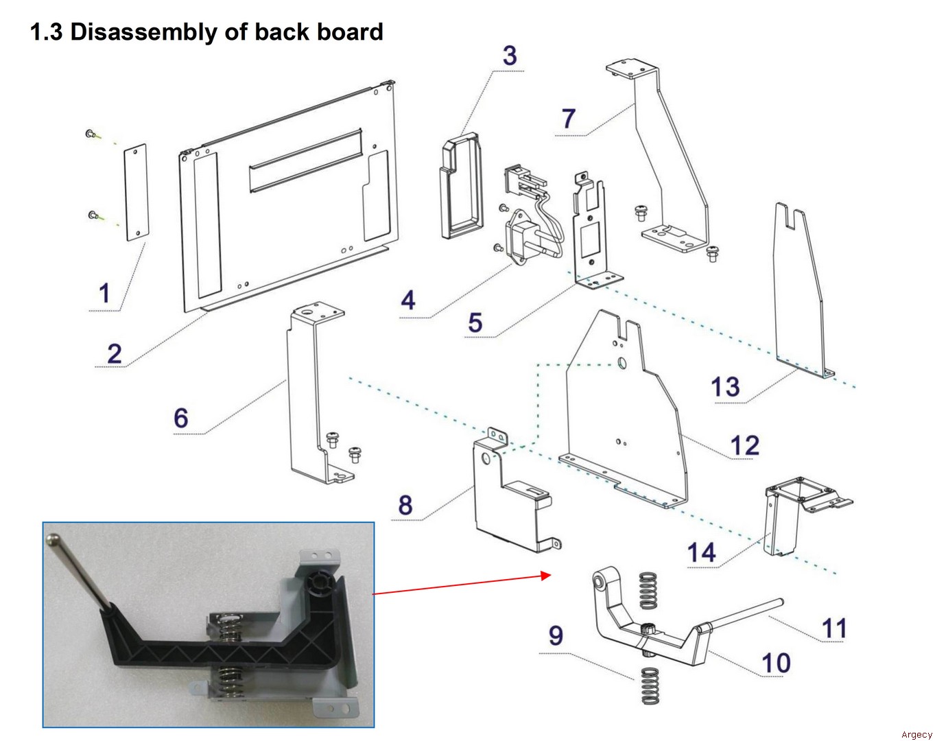 | 1.3 1 21.501.491.0600r Parallel Port Board 2 21.501.491.0480r Back Board 3 21.503.491.0590r Cover, Mains 4 21.912.491.0010r Power Input Switching Assy 5 21.501.491.0570r Power Socket Holder 6 21.501.491.0540r Case Holder, Left 7 21.501.491.0550r Case Holder, Right 8 21.501.491.0560r Cover Board 9 21.501.491.0610r Paper Bail Spring 10 21.503.491.0571r Paper Lever 11 21.508.491.0100r Paper Bail 12 21.501.491.0520r Paper Brace, Left 13 21.501.491.0530r Paper Brace, Right 14 21.501.491.0510r Connection Holder | ![]() |
