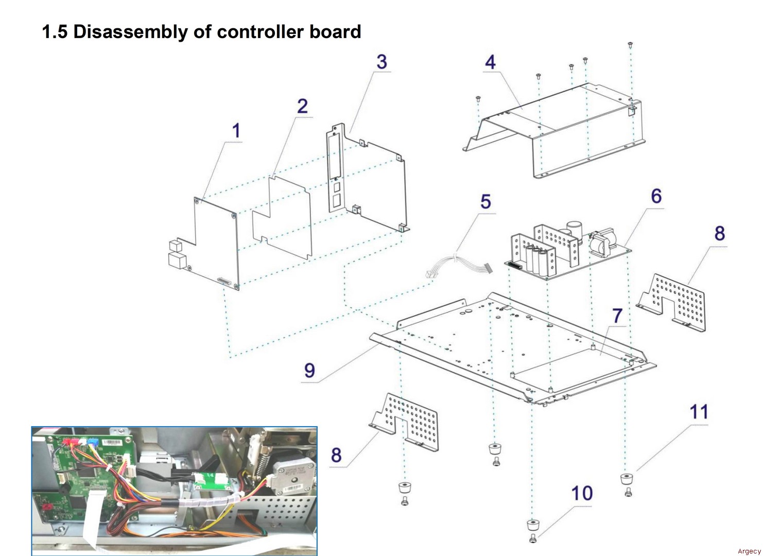 | 1.5 1 21.906.491.0061r Controller Board Assy(With Enternet Port) 1 21.906.491.0071r Controller Board Assy(Without Enternet Port) 2 21.503.491.0690r Insulating Plate 3 21.501.491.0490r Controller Board Holder 4 21.501.491.0451r Movement Holder 5 21.001.491.0021r Power Output Cable 6 21.906.491.0020r Power Supply Unit 7 21.503.491.0640r Power Supply Unit Shielding Plate 1 8 21.501.491.0650r Shielding Plate 9 21.501.491.0420r Bottom Base 10 21.E.00530-040r Screw M3*4 11 21.518.491.0030r Footpad | ![]() |
