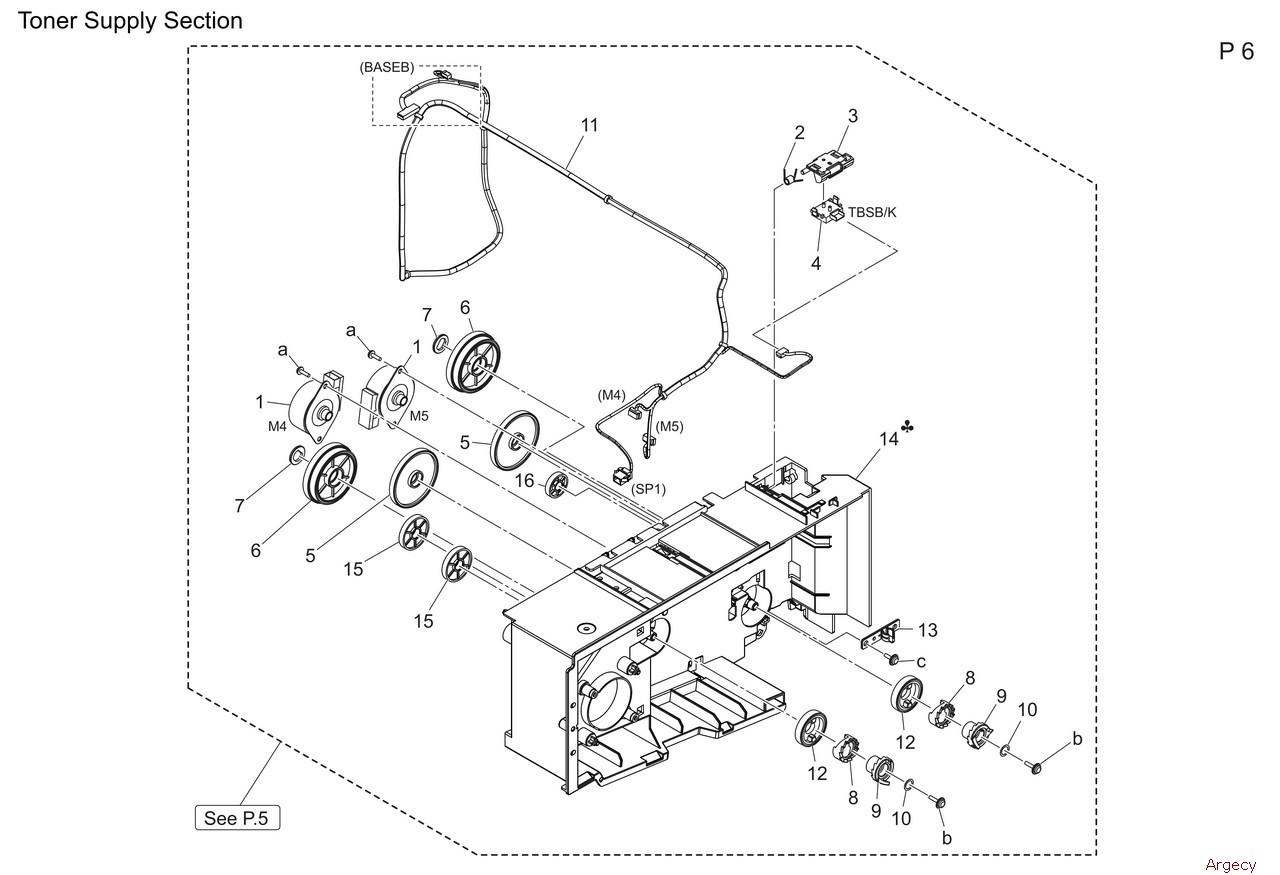 1 A7PUM10700 Stepping motor 2 A3GN401000 Torsion Coil spring 3 A93E401400 Mounting Plate 4 A0EDM60001 Relay Connector 5 A93E400200 Gear 20107T 6 A93E400300 Gear 4986T 7 A93E402000 Holding Part 8 A93E400900 Coupling 9 A93E400800 Coupling 10 A93E401700 Washer 11 ACT9N10100 Toner Control Harness 12 A93E400500 Gear 30T 13 A93E401500 Lock Part 14 ACT9400001 Holder 14 ACT9405001 Holder 15 ACT9400100 Gear 16 A93E400400 Gear 25T |