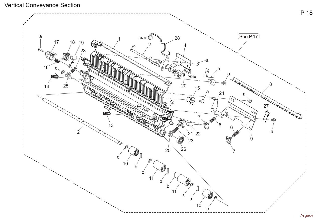 1 A93E705000 Holder 2 A93E230600 Gear 20T 3 A93E700600 Mounting Plate 4 A93E701101 Roller 5 A93E705401 Stopper Part 6 A93E700800 Guide 7 A93E704800 Cushion 8 A93E705301 Stopper Part 9 A93E707300 Roll 10 A93E700902 Torsion Coil spring 11 A93E706100 Bushing 12 1134304301 BUSHING 13 A93E701600 Gear 20T 14 A93E701700 Compressing Coil spring 15 A93E701300 Lever 16 A93E701500 Ground Plate 17 A93E701211 Reinforce Plate 18 A5C1M50100 Photointerrupter 19 ACT9700100 Conveyance Guide 20 A7AHM50400 Humidity sensor 21 A93E230500 Gear 17T 22 A93E230400 Gear 17T 23 A93E230700 Gear 1718T 24 A7AHM20501 Clutch 25 A93E230301 Gear 19T |