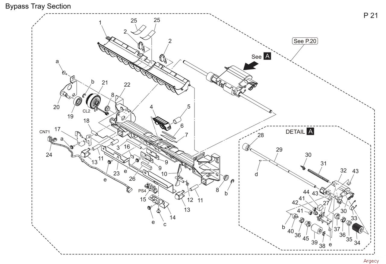 1 A93E271000 Actuator 2 A93E278301 Torsion Spring 3 A93E270803 Lock Lever 4 A93E270900 Pulling Coil spring 5 A93E277700 Lever 6 A93E277802 Compressing Coil spring 7 A93E276900 Stopper 2 8 A93E276800 Stopper 1 9 A93E275124 Guide Upper 10 A93E275300 Idler Roll 11 A93E275500 Pulling Coil spring 12 A93E275411 Shaft 13 A93E275600 Torsion Coil spring 14 A93E275200 Actuator 15 A93E277300 Ground Spring 16 A93E275700 Light blocking Part 17 A93EN11D01 Ground Harness 3 18 A93E270701 Cover Upper 19 A93E945600 Label 20 AAJNR70733 Feed Roller Assy 21 A93E279000 Guide |