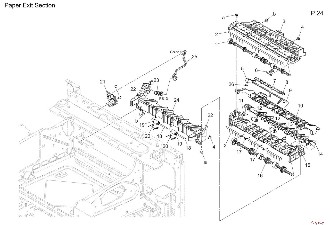 1 A93E816102 ReverseExit Roller 2 A93E891500 Neutralizing Brush 3 A93E890202 Paper exit Guide Upper 4 A00J169200 Shoulder screw 5 A93E890900 Actuator 6 A93E891600 Contact 7 A93E895500 Label 8 A93E890800 Guide 9 A93E891200 Torsion Coil spring 10 A93E890703 Separating Guide 11 A93E816502 Torsion Coil spring 12 A93E816802 Roll 13 A93E816700 Torsion Coil spring 14 A93E816402 Guide 15 A93E816302 Guide 16 A93E890103 Paper exit Roller 17 A93E816200 Spring 18 A93E892300 Shaft 19 A93E890300 Roll 20 A93E890601 Spring 21 A93E895100 Hold Plate 22 A93E891300 Cushion 23 A5C1M50100 Photointerrupter 24 A93E891000 Paper exit Holder 25 A93EN10K00 Relay harness 3 26 A93E892500 Cushion |