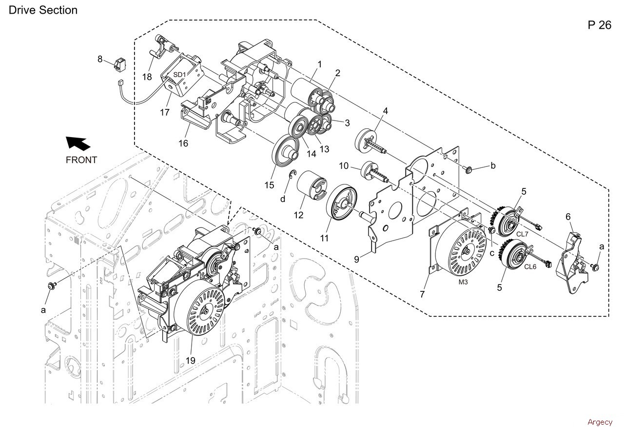 1 A93E222500 Gear 20T 2 A93E222600 Gear 2426T 3 A93E222700 Gear 28T 4 A93E222300 Gear 23T 5 A7AHM20501 Clutch 6 A93E222800 Holder 7 AA2JM11000 Brushless motor 30 8 V651010001 connector 9 A93E220201 Drive Side plate 10 A93E222100 Gear 21T 11 A93E220401 Gear 71T 12 A93E220300 Gear 22T 13 A93E221300 Gear 2021T 14 A93E221200 Gear 23T 15 A93E221100 Gear 34T 16 A93E220102 Drive Holder 17 AAJRR72100 Solenoid Assy 18 A93E223100 Lever 19 AAJRR71322 Fusing Drive Assy |