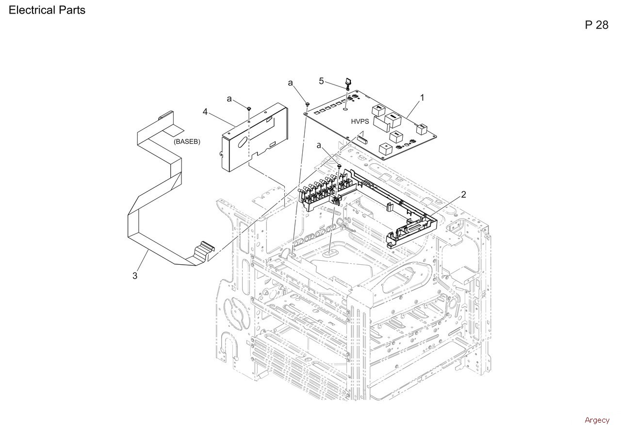 1 ACT9M40300 HV Board Assembly 2 ACT9R71100 HV Board Contact Assy 3 ACT9N10400 HV Flat Cable 4 A93E134200 Mounting Plate 5 A797151500 Stopper Shaft |