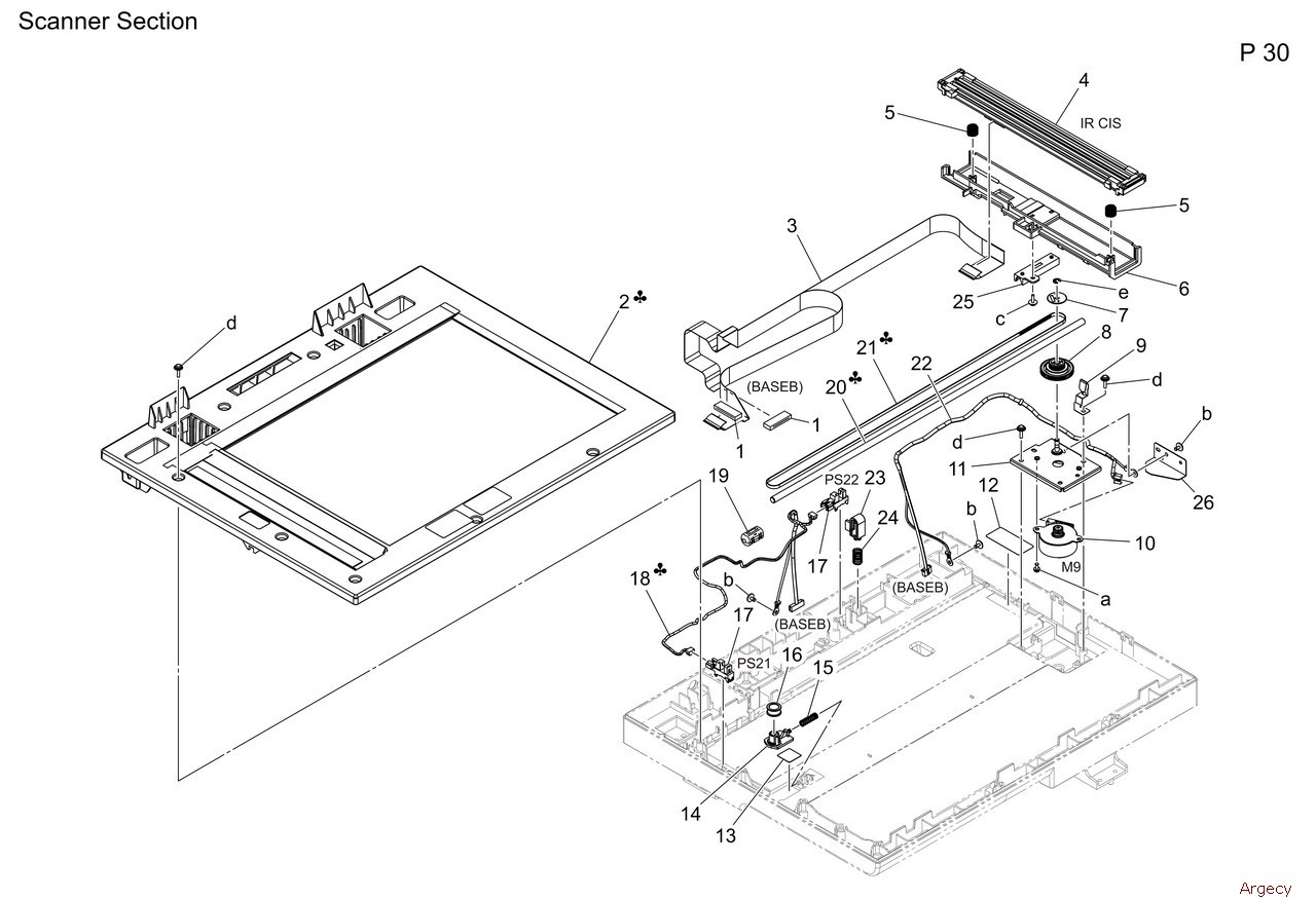 1 A7AHM90000 Connector 2 AAJNR71100 Upper Cover Assy (IRLGL) 2 AAJNR71000 Upper Cover Assy (IRA4) 3 A93EN11300 Scanner Flat Cable 4 AAJNR71200 CIS unit IR 5 A93E263200 Compressing Coil spring 6 A93E262802 Frame 7 A93E261000 Cap 8 A93E260800 Gear 2460T 9 A93E260900 Ground Plate 10 A93EM10K00 Stepping Motor 11 A93E260701 Mounting Plate ASSY 12 A93E264202 Sheet 13 A93E261500 Sheet 14 A93E260400 Holder 15 A93E260501 Compressing Coil spring 16 A93E260300 Pulley 17 A5C1M50100 Photointerrupter 18 A93EN11100 Scanner Detection Harness 1 18 A93EN11200 Scanner Detection Harness 2 19 A3GNM93100 Ferrite core 20 A93E261200 Guide Shaft 20 A93E263500 Guide Shaft 21 A93E260600 Timing belt 788L 21 A93E263600 Timing belt 894L 22 A93EN11000 Scanner Drive Harness 23 A93E261300 Lever 24 A93E261400 Compressing Coil spring 25 A93E262901 Guide 26 A93E264000 Shield Plate |