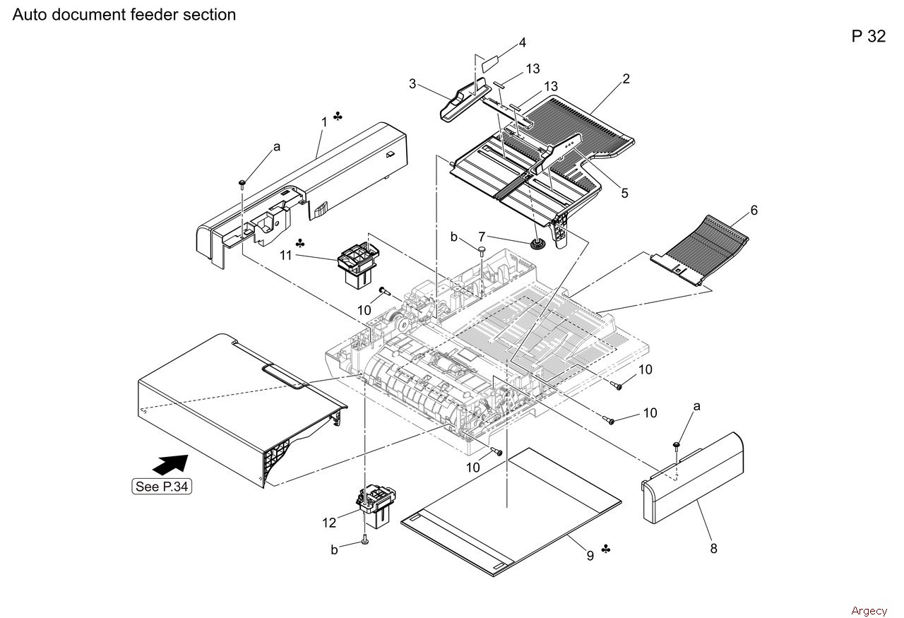 1 AAJNR70900 CIS unit ADF 2 A93E266000 Guide Film 3 A93E286500 Read Sheet 4 A93E287400 Guide Part 5 A93E285900 Spring 6 A93E287200 Ground Plate 7 A93E286002 Conveyance Holder 8 A93E286700 Lock Lever 9 A93E286800 Lock Hook 10 A93E287100 Spring 11 A93E286300 Shaft 12 A93E286100 Idler Roller 13 A93E286200 Spring 14 A93E287000 Lock Shaft 15 A93E288200 Spring 16 A93E286901 Lock Hook 17 A93E285600 Support Frame 18 A93E266100 Hold Shaft 19 A7AHM90000 Connector 20 A93E288000 Guide 21 A93EN11G00 ADF Flat Cable 21 A93EN11H00 ADF Flat Cable 22 9335140071 Solid State Switch 23 A93E265800 Mounting Plate 24 A93EN11B01 Ground Harness 1 25 A93EN11501 ADF Detection Harness 1 26 A85CM55600 Photo Sensor |