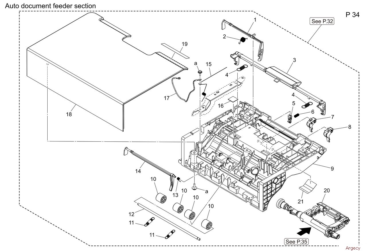 1 A93E272813 Paper feed Guide 2 A93E273601 Lever 3 A93E278600 Shoulder screw 4 A93E278400 Cover 5 A93E273200 Pad 6 A93E270101 Neutralizing Brush 7 AAJNR70800 Separation Roller Assy 8 A93E272700 Holder 9 A93E276000 Guide Film 10 A93E273501 Lever 11 A93E274511 Ground Plate 12 A93E273401 Guide Rear 13 A93E273301 Guide Front 14 A108M50000 Photoreflector 15 A93EN11600 ADF Detection Harness 2 16 A93E272900 Shaft 17 A93E273100 Compressing Coil spring 18 A93E274900 Ground Spring 19 A93E273000 Roll 20 A93E272600 Compressing Coil spring 21 A93E279500 Ground Spring |