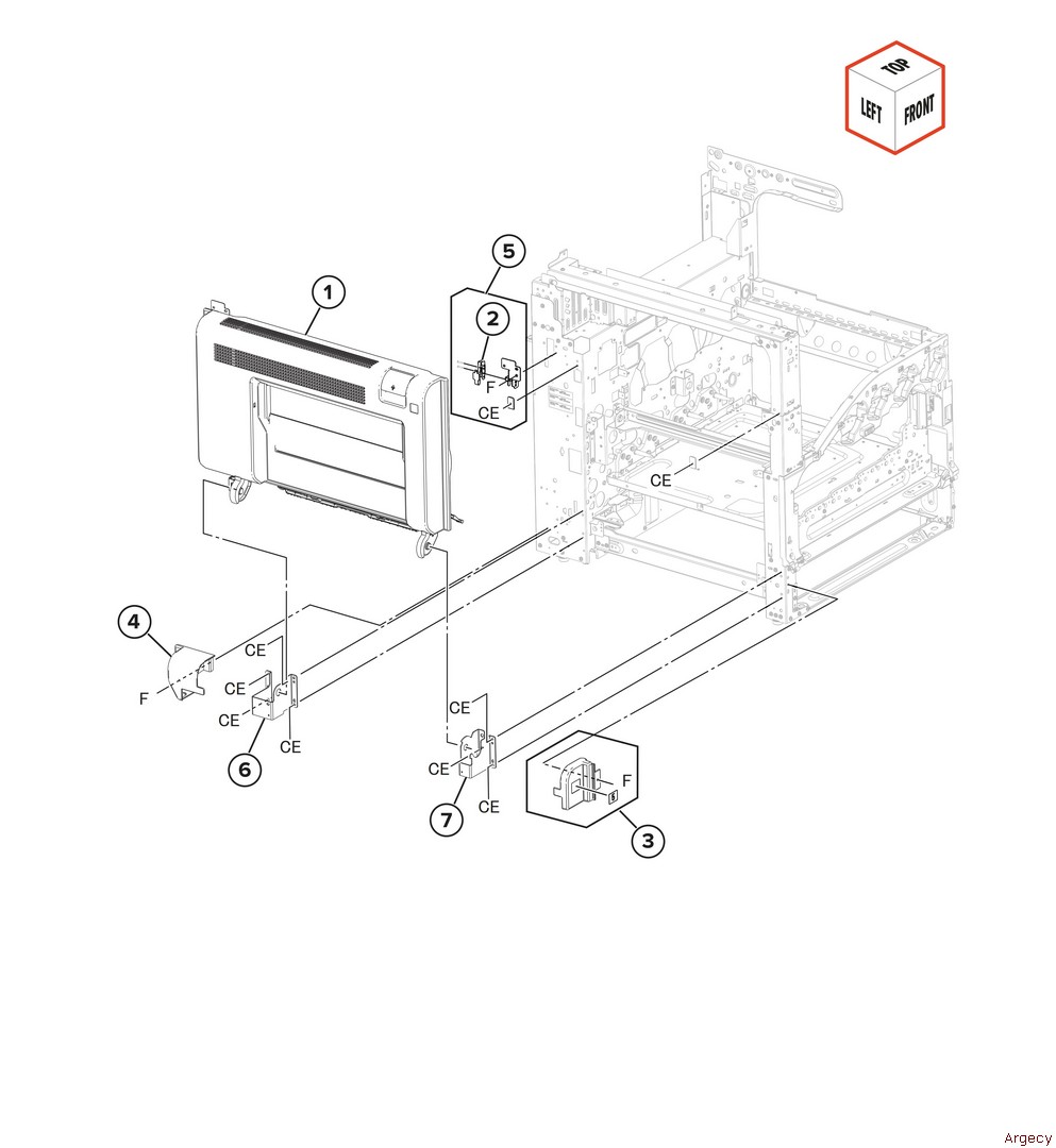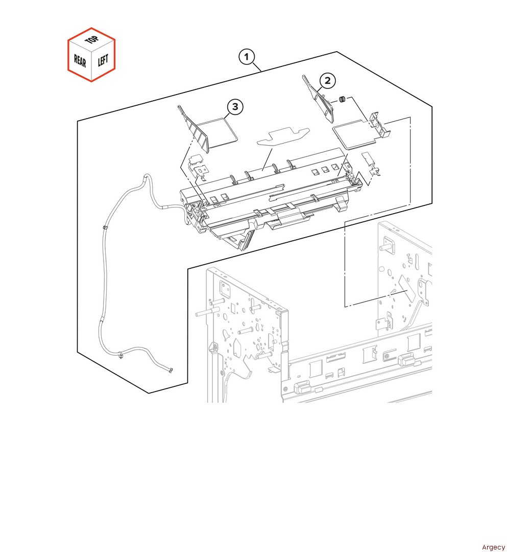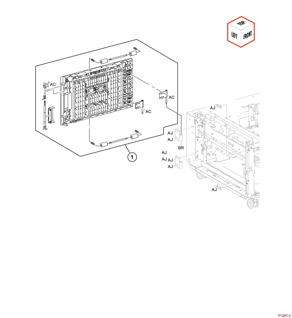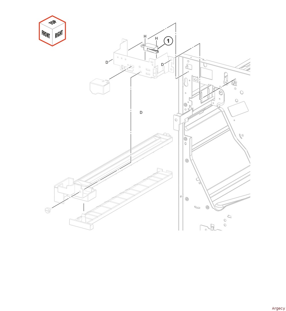 Assembly 97: Staple ?nisher covers 1 2 3 41X3637 Staple finisher front interlock bracket assembly Fully refurbished with 90-day warranty 41X3637 4 5 6 | |