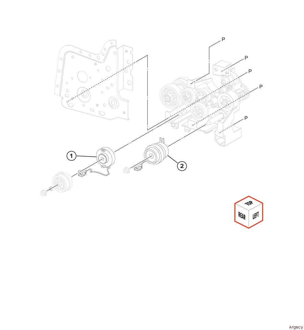 Assembly 78: 520-sheet tray transport 3 1 40X6653 Tray guide right roller 2 40X6652 Tray guide left roller | |