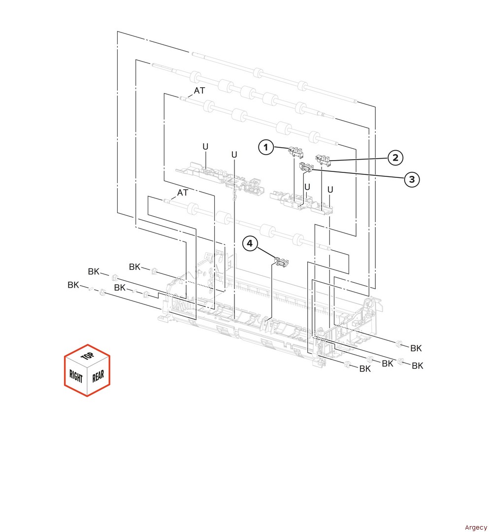 Assembly 42: ADF registration 1 1 40X7403 Sensor (ADF mixed paper width 3) 2 40X7403 Sensor (ADF mixed paper width 1) 3 40X7403 Sensor (ADF mixed paper width 2) 4 40X7403 Sensor (ADF scan 2) | |