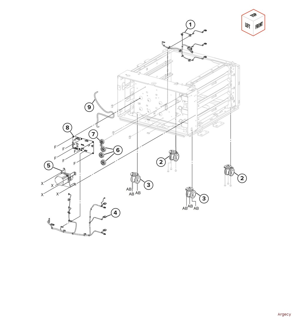 Assembly 72: 3 x 520-sheet tray transport 2 1 2 3 4 5 6 7 8 9 | |