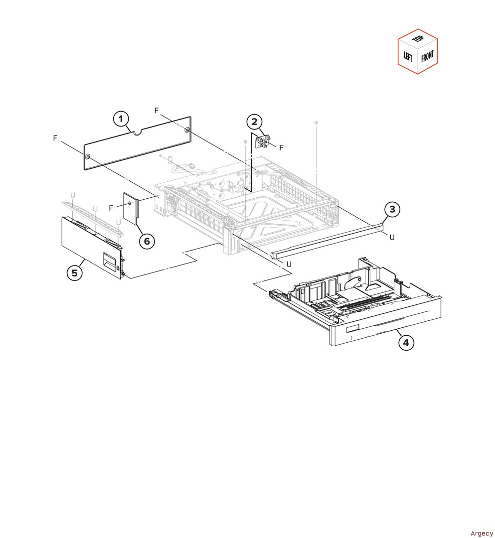 Assembly 73: 520-sheet tray covers 1 3 4 5 6 | |