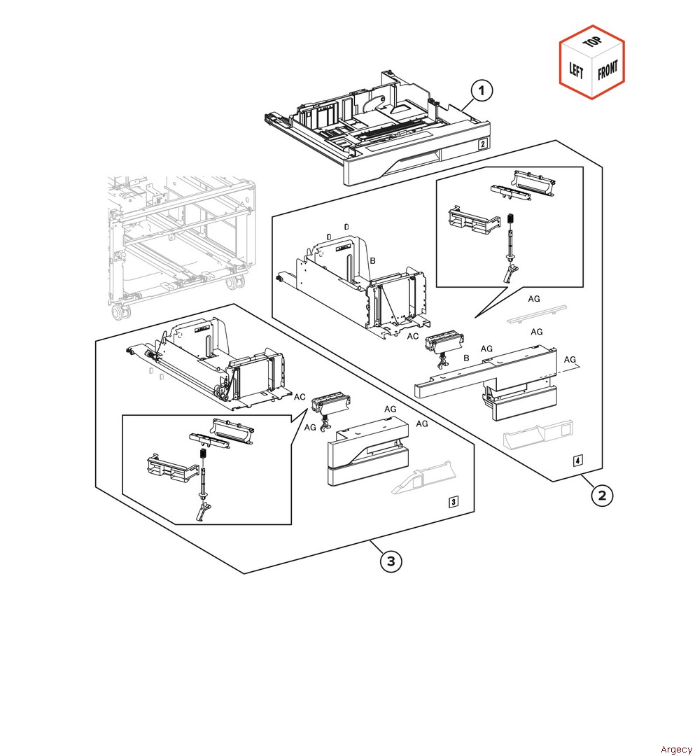 Assembly 70: 3 x 520-sheet tray feed 3 1 | |