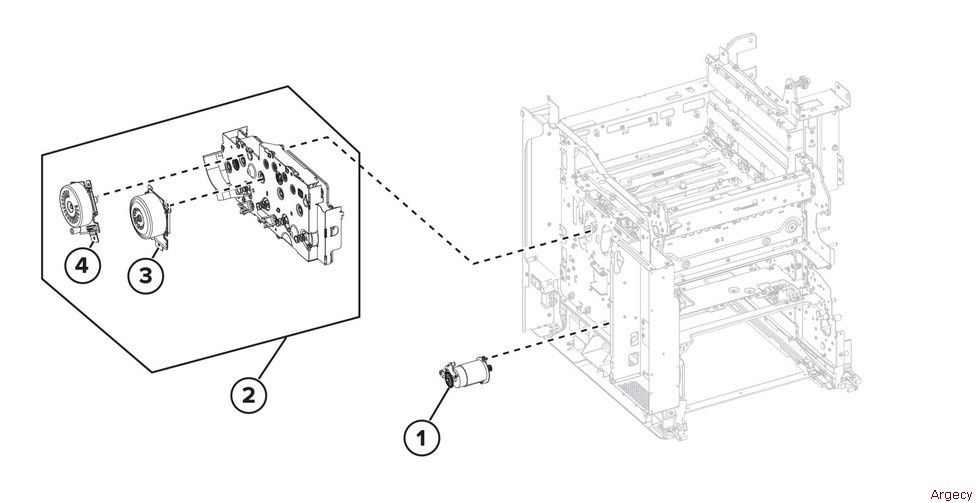 PL 40.10 Drive Components 1 2 3 — Motor (CMY) (P/O PL 40.10 Item 2) (REP 40.1) 4 — Motor (K/transfer belt) (P/O PL 40.10 Item 2) (REP 40.1) |